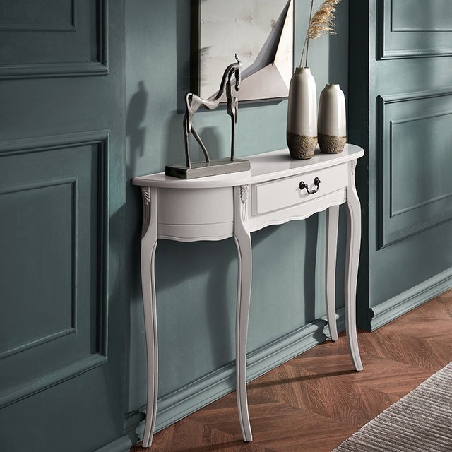 ポーチテーブル ポーチキャビネット 玄関用 無垢材 通路装飾 高級感 半円形エントランステーブル アンティーク調 ヨーロピアン 北欧風 おしゃれ