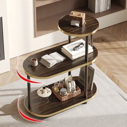 このサイドテーブルは、無垢材を使用した自然な風合いが魅力です。リビングや寝室、オフィスなど、様々なインテリアにマッチし、おしゃれなアクセントを加えます。3段の設計により、コーヒーや本を置くのはもちろん、お気に入りの飾りをディスプレイするのにも最適なアイテムです。