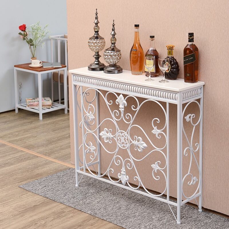 玄関テーブル エレガント メタル ハードウッド 組み立て不要 装飾カットアウトデザイン 収納棚 装飾家具 サイドボード ヨーロピアンスタイル 高級感 ホワイト ブラック | Bellechan Shop 女性のためのインテリア