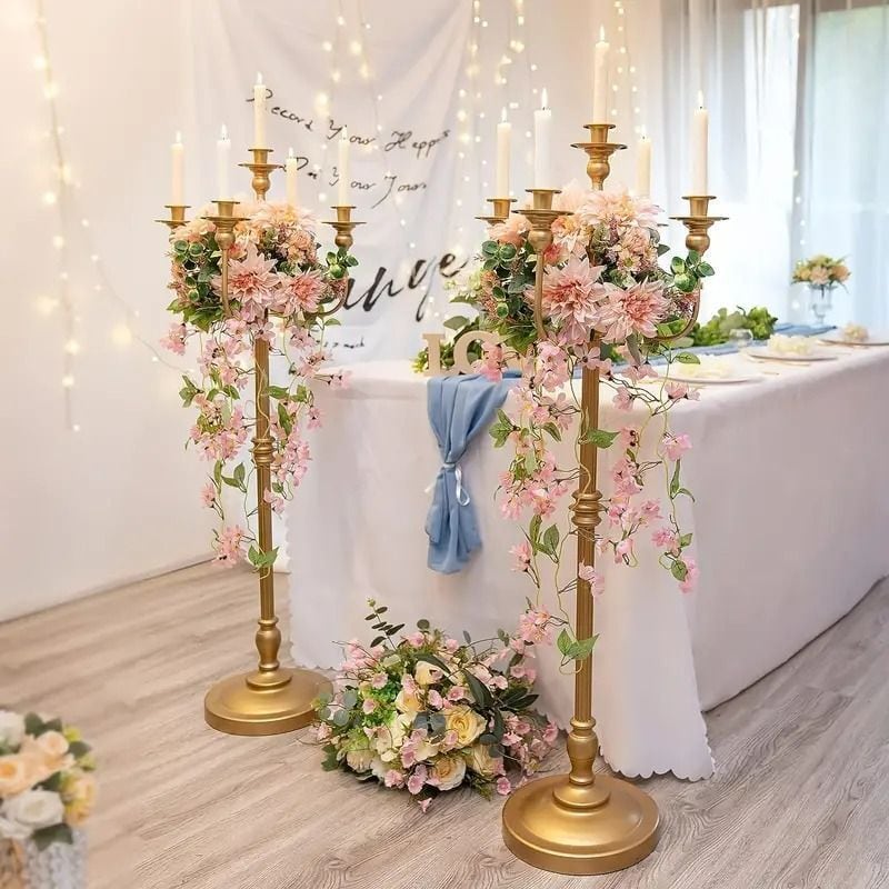 独創的なデザインと高品質の金属製素材で作られたゴールデン燭台は、会場全体に上品な雰囲気を醸し出します。