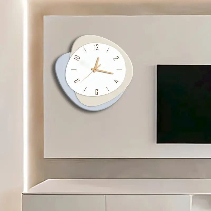 大型で目立つアクリル壁時計、クリーム色の抽象デザイン。