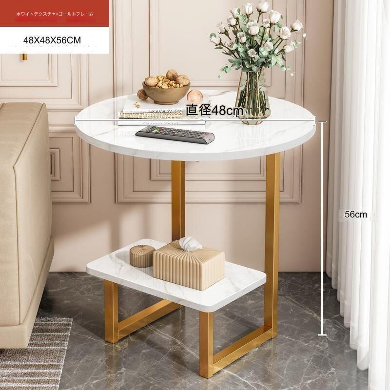 サイドテーブル 小さなテーブル サイドキャビネット 北欧ライト 高級コーヒーテーブル モダンシンプル クリエイティブ ホームリビングルーム 二層ソファ 幅48cm×高さ56cm | Bellechan Shop 女性のためのインテリア