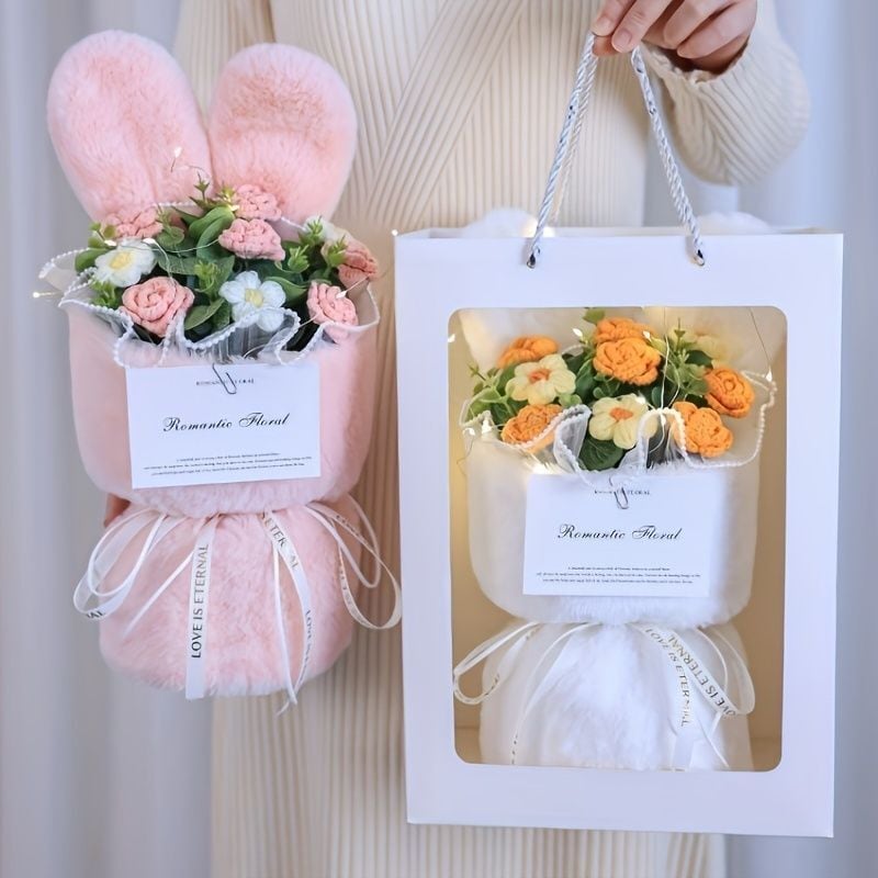 ニットフラワー うさぎ 造花 手作り かぎ針編み 編み物 女の子 誕生日 プレゼント バレンタインデー ギフト フェスティバル パーティー ユニバーサル 装飾 ブーケ イースター ギフト | Bellechan Shop 女性のためのインテリア