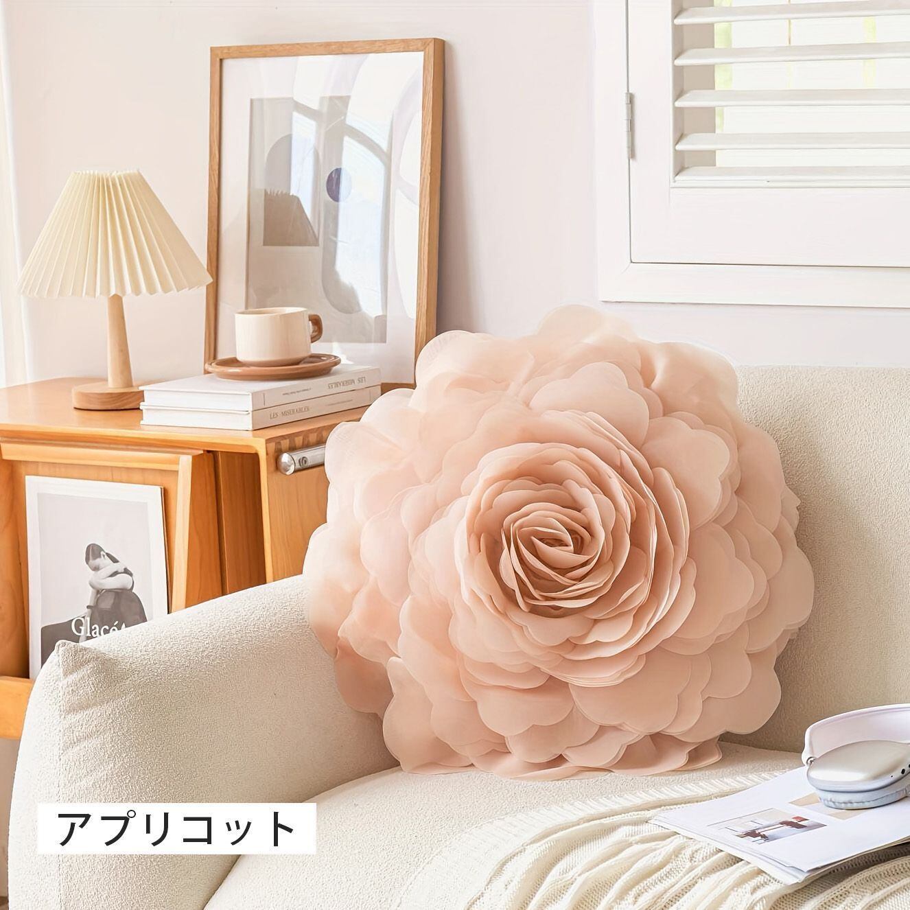 チュール素材のカバーは、触り心地が柔らかくて上品。花柄のデザインが部屋に彩を添え、プリンセスのような雰囲気を演出します。ベッドサイドやソファに置いて使うだけで、一気にお部屋の印象が変わります。