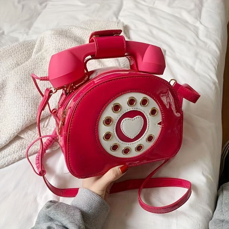 電話型ハンドバッグ クロスボディバッグ 女性 トレンディ 可愛い キュート ハンドバッグ 黒 蛍光ピンク ローズレッド ユニーク 面白い レトロ電話 | Bellechan Shop 女性のためのインテリア