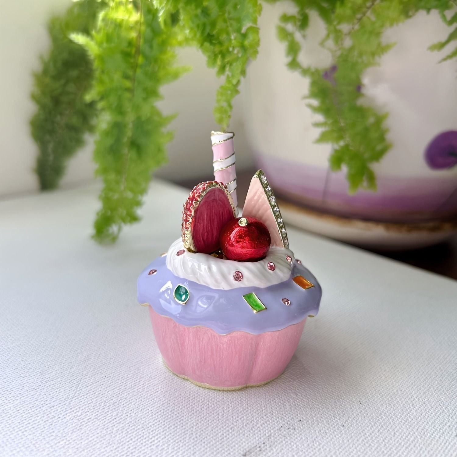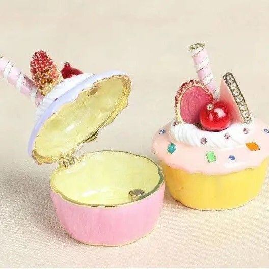 可愛らしいカップケーキのメタルジュエリーボックスは、お部屋のアクセントにもなるおしゃれな収納アイテムです。