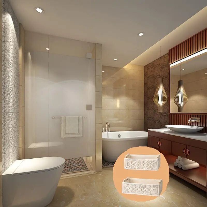編み込み収納バスケット ホワイト 手作り コットンロープタッセルデスクトップトイレットペーパー小物収納ボックス ホテル キャビネット収納ボックス | Bellechan Shop 女性のためのインテリア