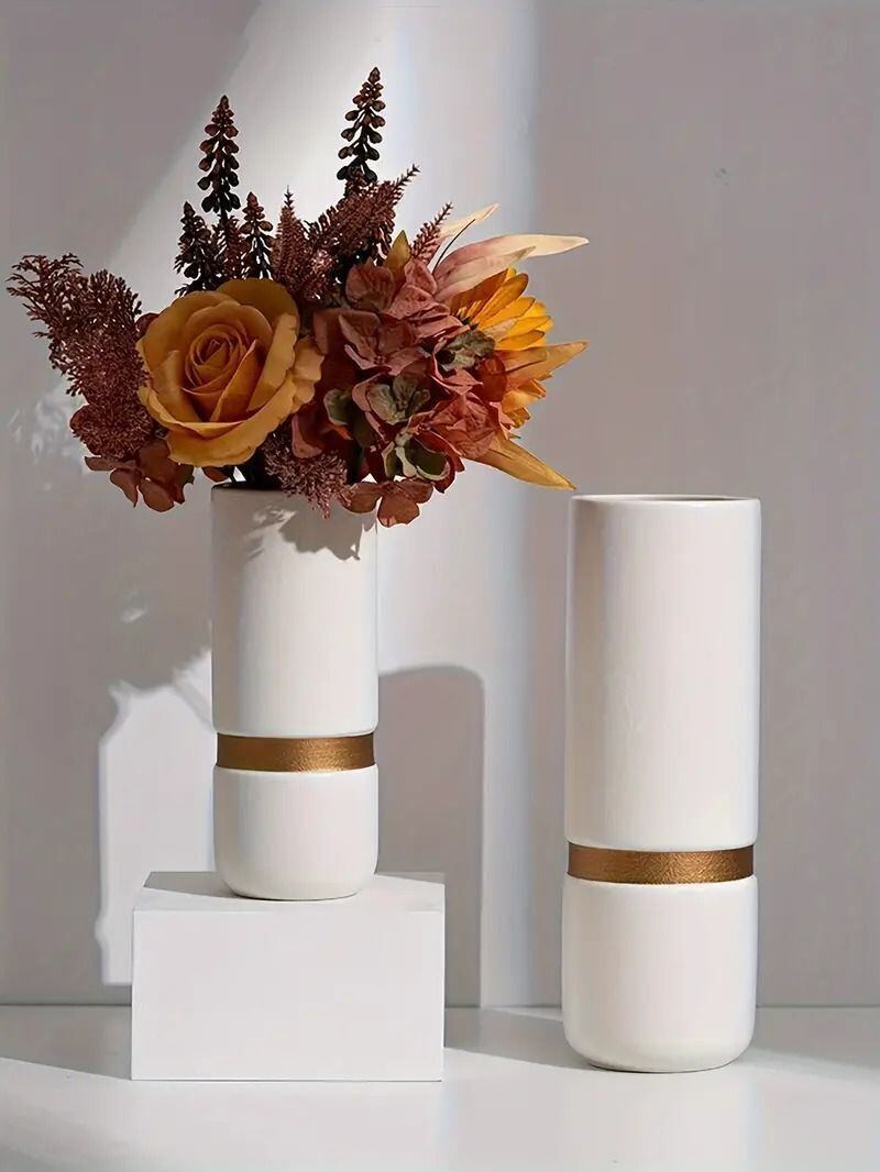花瓶 ストレートシリンダー 金縁つき花瓶 ノルディックテーマ ウェディング装飾 テーブルトップ装飾 リビングルーム装飾 ベッドルーム装飾 アイデアギフト | Bellechan Shop 女性のためのインテリア