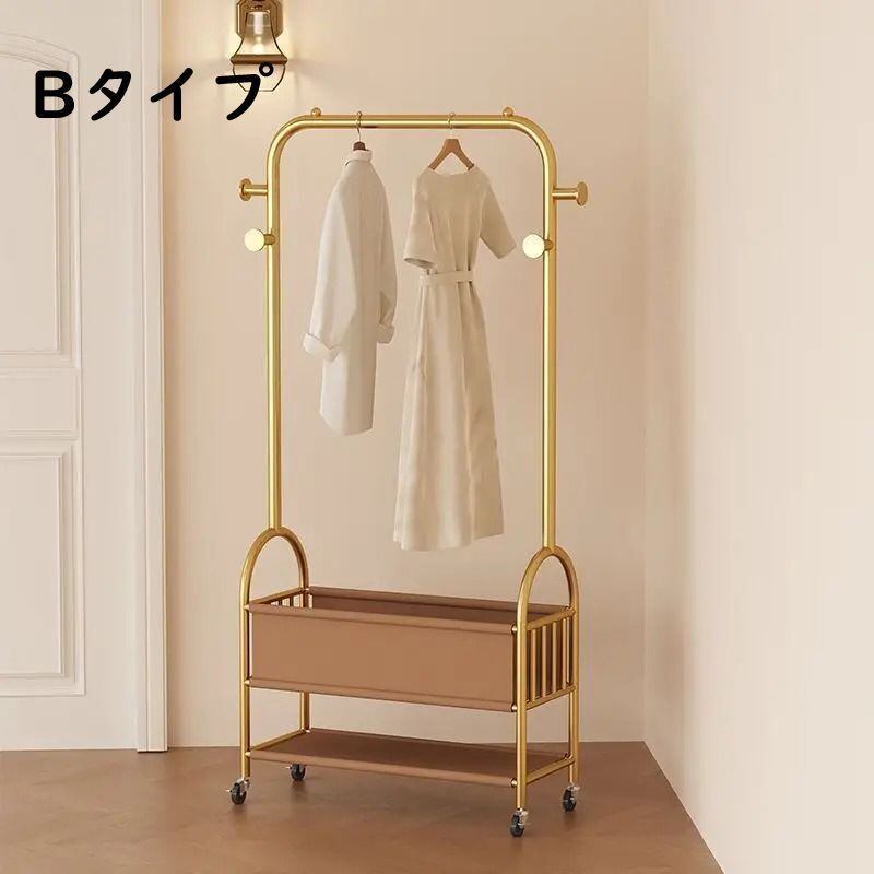 衣服ラック ゴールド 収納 キャスター付き モダン お洒落 ハンガーラック おしゃれ 簡単組み立て SNS映え 韓国 インテリア 衣服収納 ベッドルーム 棚付き | Bellechan Shop 女性のためのインテリア