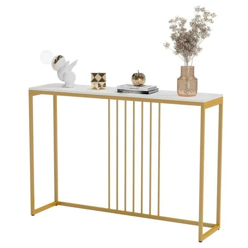 セラミック製の大理石調天板が高級感を演出し、スリムなゴールド脚が空間を広く感じさせます。