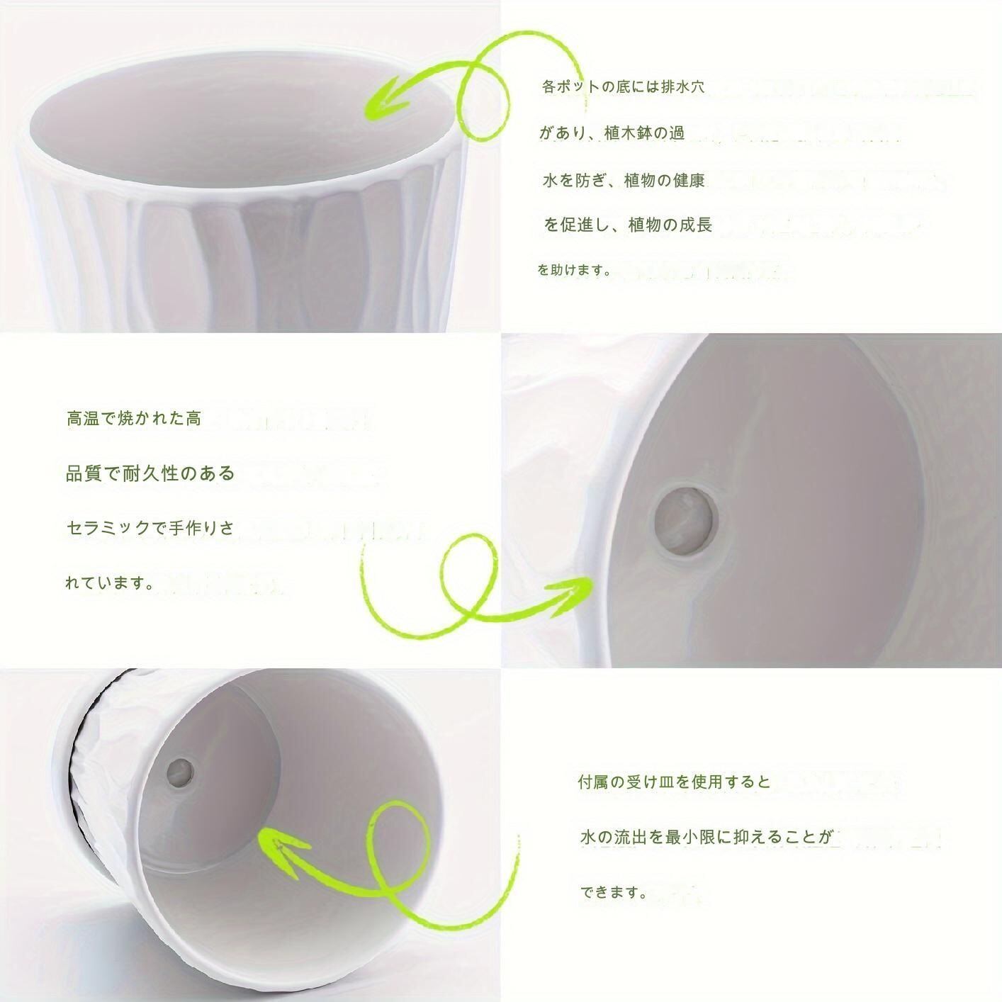 この花ポットセットは、職人の手によって一つ一つ丁寧に作られています。陶器の素材は軽量でありながらも丈夫で、長くご使用いただけます。植物を植えることでお部屋に自然の風景を取り入れ、心も癒されること間違いなし。
