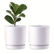 2個セット 6.7インチ/17cmの陶器の花ポット 排水孔とトレイ付き 白 屋内用 花ポット 屋外用 植物植え付け ポット 家庭用装飾 ギフト モダン | Bellechan Shop 女性のためのインテリア