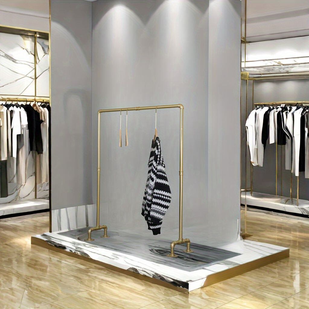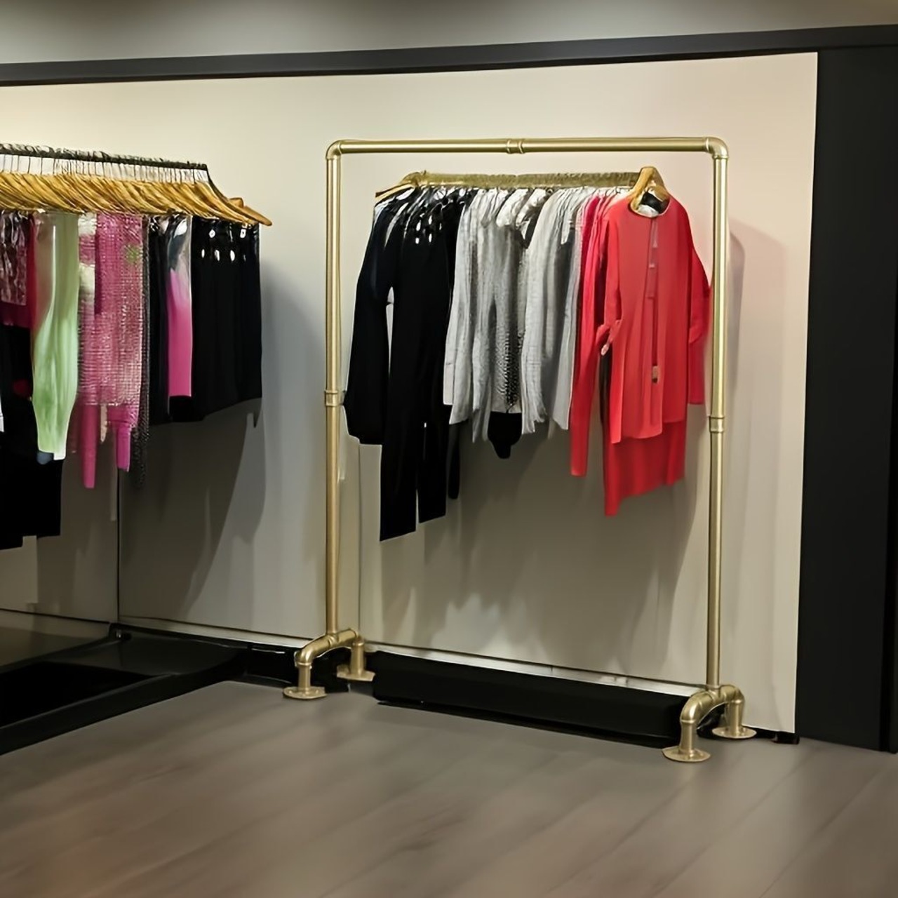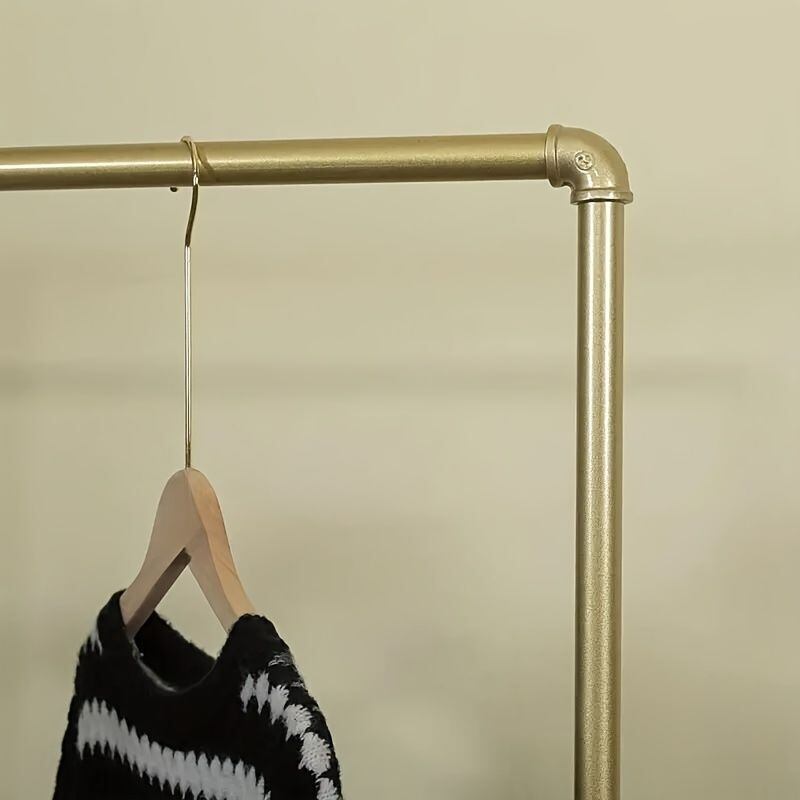 工業用パイプ衣類ラックは、おしゃれで頑丈なディスプレイラックです。ヴィンテージスタイルのデザインがお部屋にアクセントを加えてくれます。ゴールドのパイプがおしゃれな雰囲気を演出し、お部屋のインテリアとしてもおすすめです。衣類を吊るすことができるので、シーズンオフの収納やお気に入りのアイテムのディスプレイに最適です。頑丈な造りでしっかりと衣類をサポートするので安心してご利用いただけます。スタイリッシュなスタンドラックでお部屋をおしゃれに演出しませんか。
