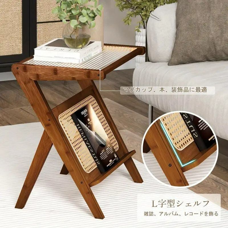 ボヘミアンエンドテーブル マガジンラック付き お洒落 竹 ヴィンテージ風 アンティーク風 人気 ナチュラル コーヒーテーブル SNS映え インスタ映え | Bellechan Shop 女性のためのインテリア