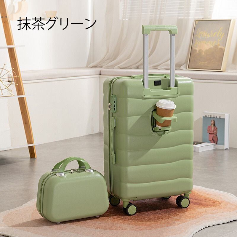 シンプルスーツケース かわいい ロック付き ドリンクホルダー ブラック ピンク ミントグリーン 多機能 男性用 女性用 SNS映え インスタ映え | Bellechan Shop 女性のためのインテリア