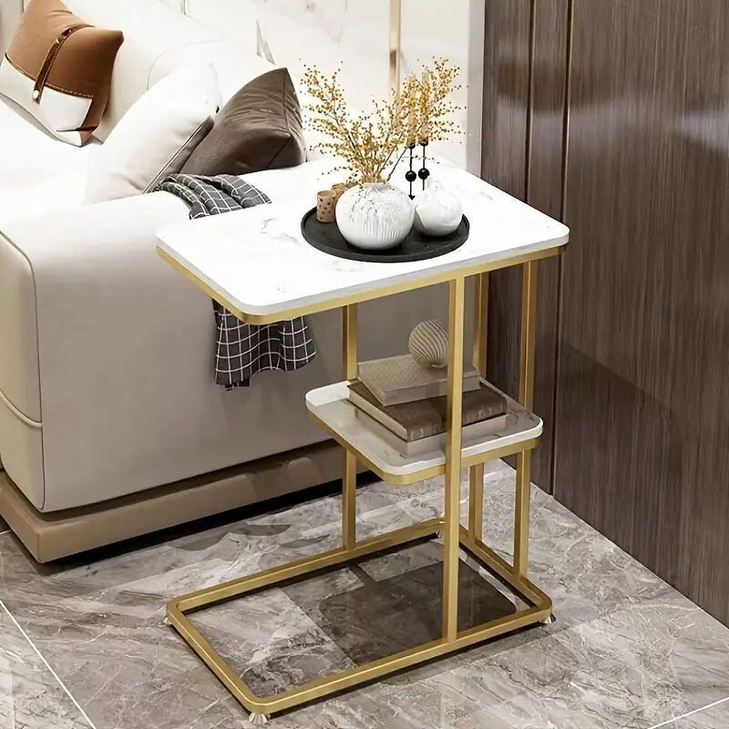 大理石×ゴールドサイドテーブル は、シックでエレガントなデザインが特徴の多機能テーブルです。リビングルームやソファサイド、ベッドサイド、キッチン、バルコニーなど、様々な場所でお使いいただけます。高級感漂う大理石の天板と洗練されたゴールドの脚が、お部屋に華やかな雰囲気を演出します。