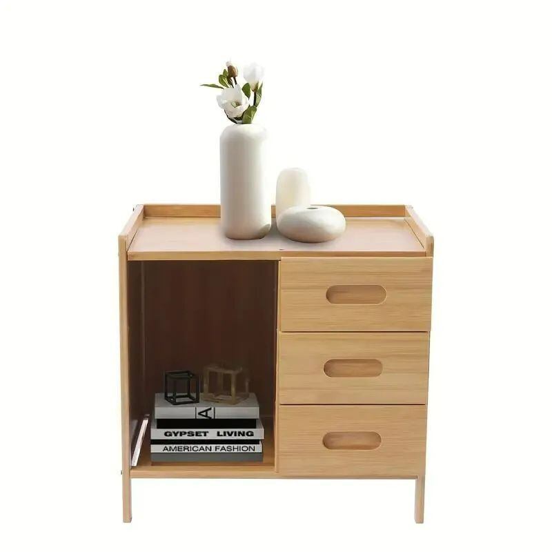心地よいナチュラルな空間を演出する木製収納キャビネット。
