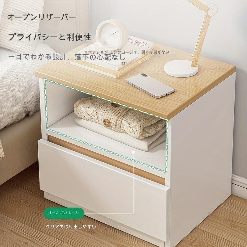 コンパクトでモダンなデザインのベッドサイドテーブルが登場しました。収納スペースが付いているので、リビングルームやオフィスでも便利にお使いいただけます。機能性とスタイリッシュさを兼ね備えたアイテムで、お部屋の雰囲気もぐっと引き立てます。
