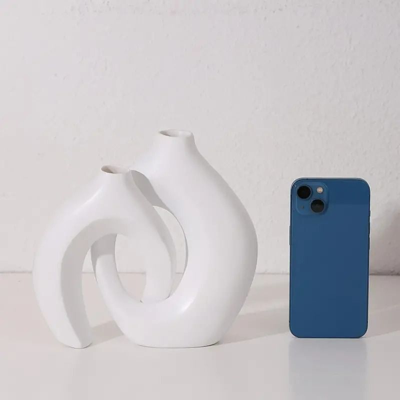 花瓶 2個セット 白 レジン製 スタイリッシュ 異なるデザイン お洒落 ホワイト 白 韓国 シンプル オールシーズン モダン SNS映え 贈り物 プレゼント | Bellechan Shop 女性のためのインテリア