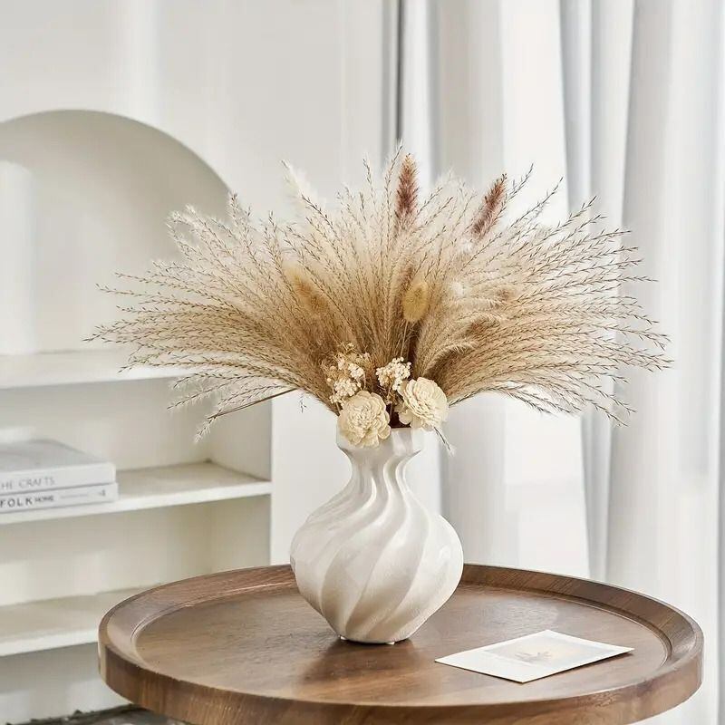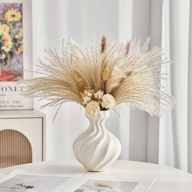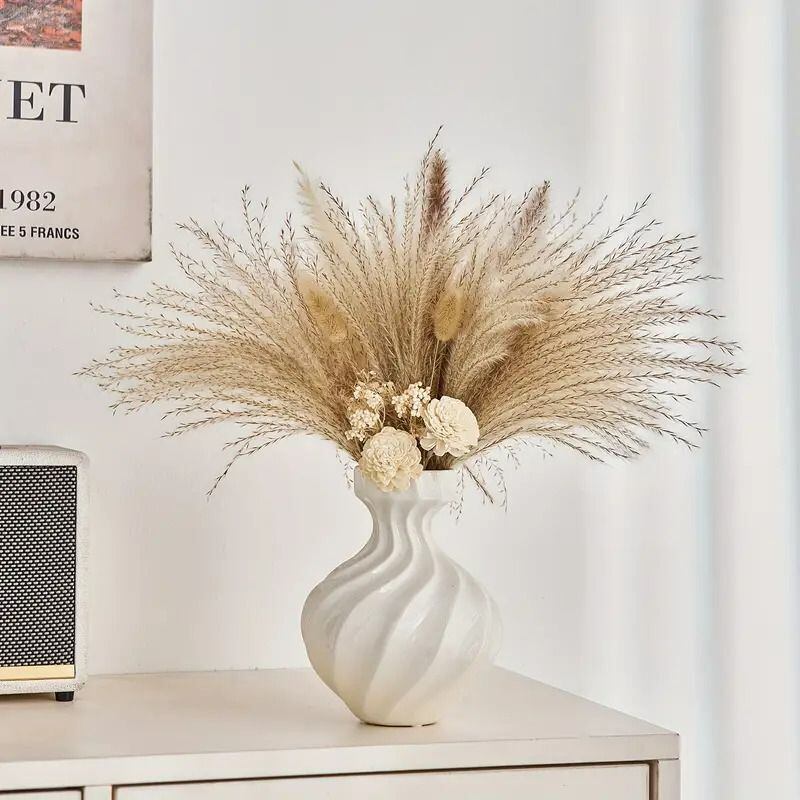 花瓶 セラミック フラワーベース ボヘミアンストライプ モダン ホワイト お洒落 シンプル スタイリッシュ かわいい 白 パンパスグラス インテリア シック SNS映え | Bellechan Shop 女性のためのインテリア
