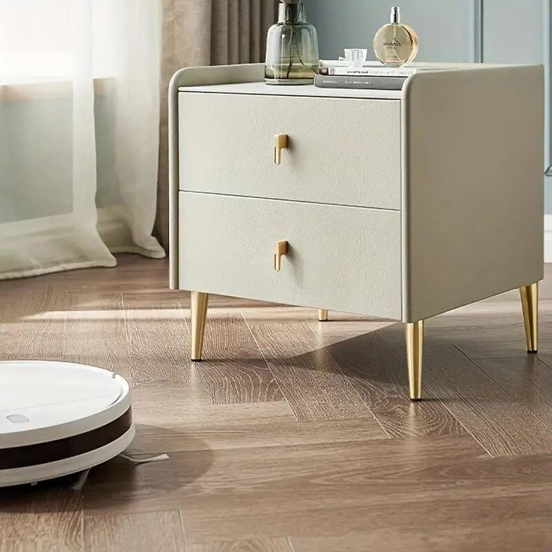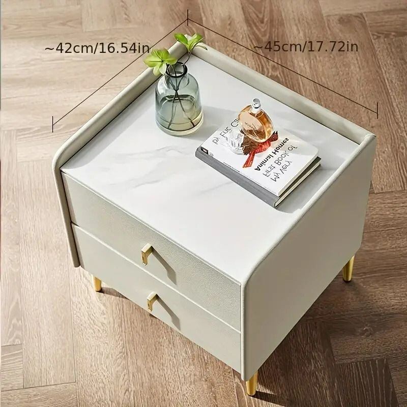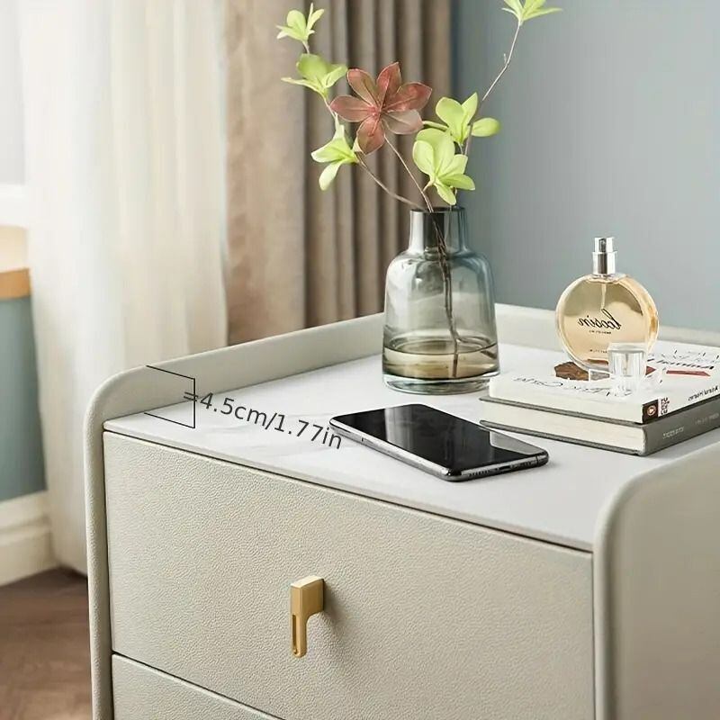 上質なレザー仕上げが施され、光沢感のあるゴールドの脚とつまみが高級感を演出し、どんなインテリアにもマッチします。