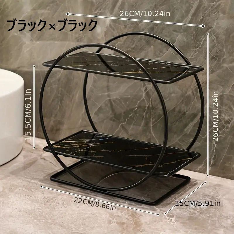 ラック 洗面所 浴室 オーガナイザー 2段 洗える金属フレーム UV耐性底部付き 耐水性 モダン シンプル マーブル柄 お洒落 おしゃれ 大理石風 ゴールド 金 白 黒 ブラック | Bellechan Shop 女性のためのインテリア