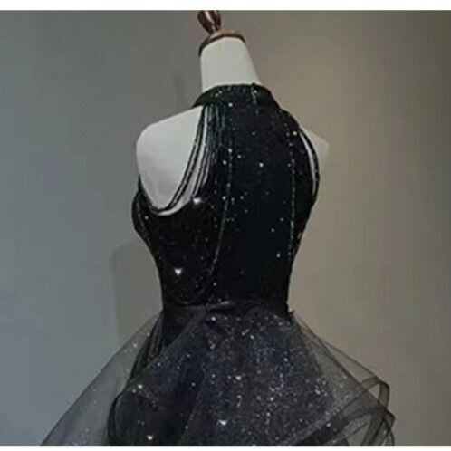 イブニングドレス ブラック ハイエンドテール ロング丈 お洒落 パーティー パーティードレス シースルー フリル ガーリー フェミニン 結婚式 舞台 発表会 演奏会 大きいサイズ | Bellechan Shop 女性のためのインテリア