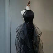 高級感あふれるブラックのカラーと流れるようなロング丈が、特別な夜のシーンにぴったりの一着です。