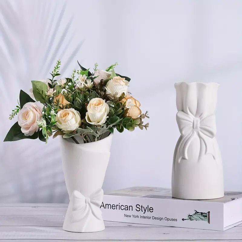 ホワイト花瓶 2つセット ボヘミアン セラミック 白 花瓶 フラワーベース お洒落 おしゃれ かわいい 可愛い 人気 エレガント ドライフラワー フェイクフラワー | Bellechan Shop 女性のためのインテリア